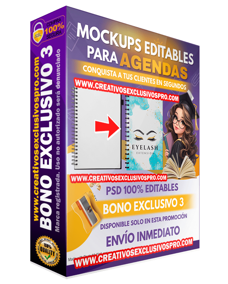 🎁 BONO 3: Pack Mockups Editables para Agendas ($14.99 Usd Valor)