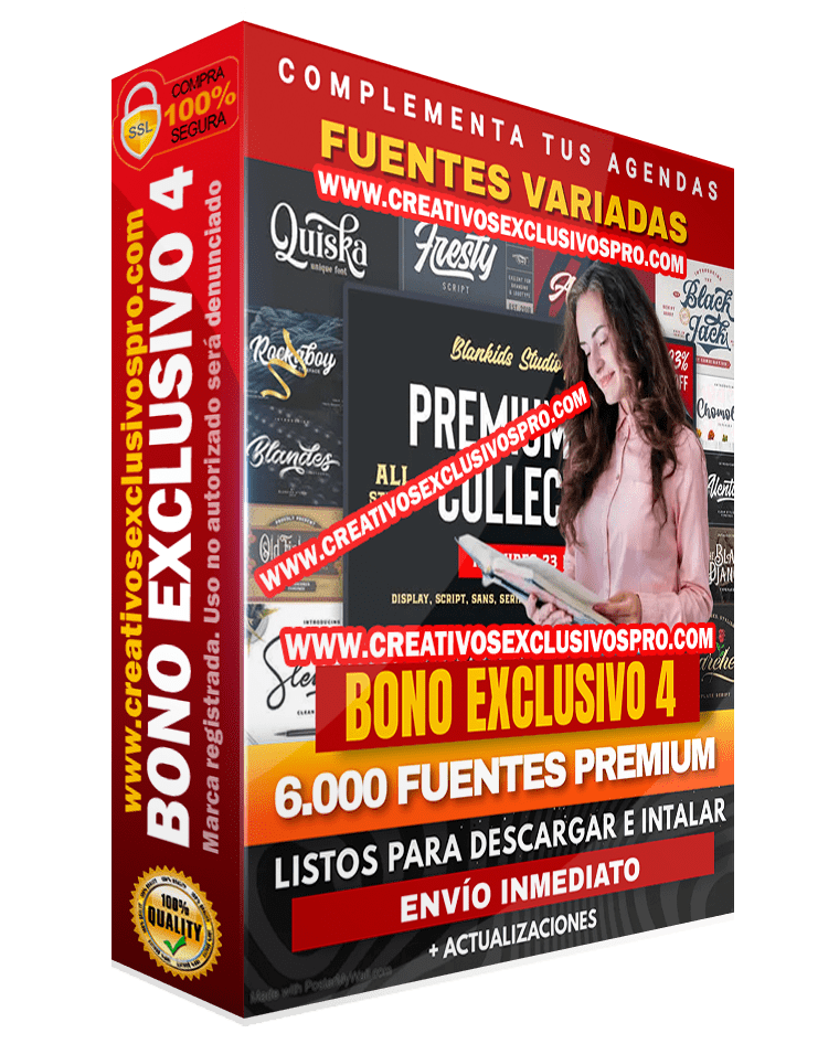 🎁 BONO 4: Pack 6.000 Fuentes Premium para Agendas ($11.99 Usd Valor)